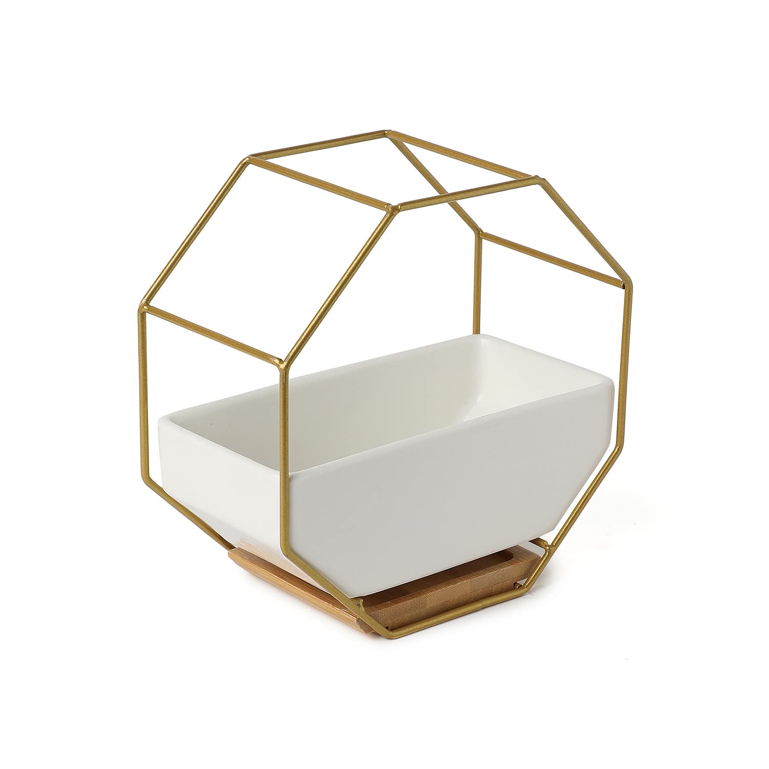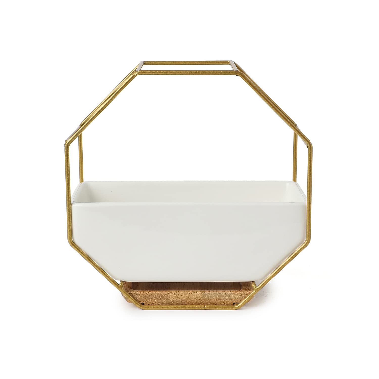 A stylish ceramic planter set with a wooden tray, perfect for displaying small plants or succulents. Combines natural charm with modern elegance for any home or office décor.