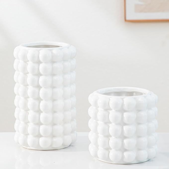 Set of 2 bubble-style white ceramic vases