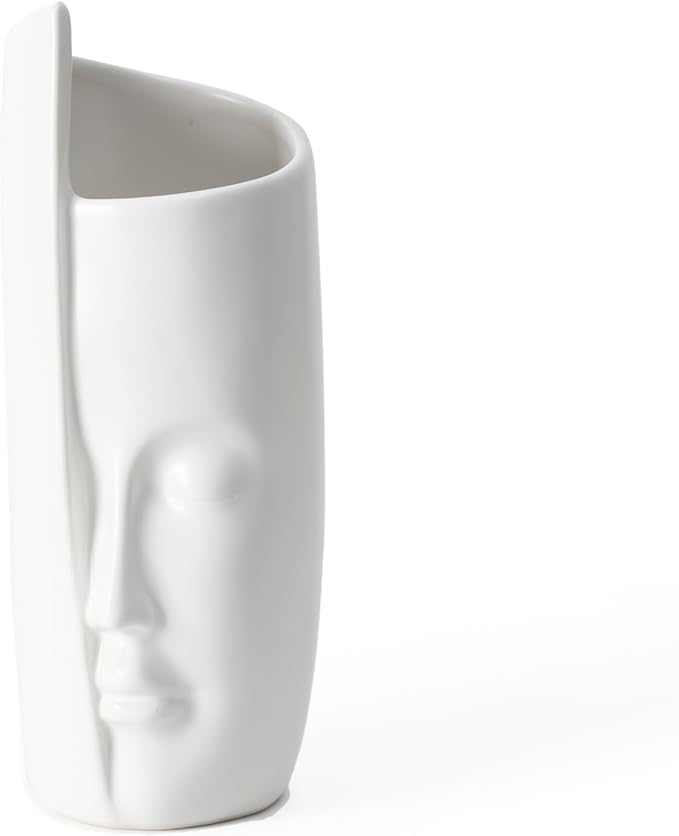 A sleek white ceramic face vase, perfect for flowers, plants, or as a stylish organizer. Adds modern elegance to living rooms, bedrooms, or office spaces.