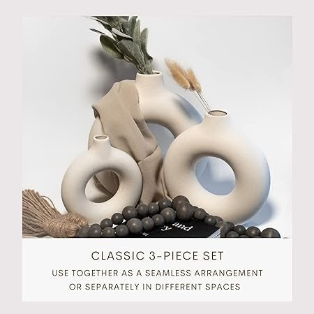 Set of 3: Includes three stylish donut-shaped vases.