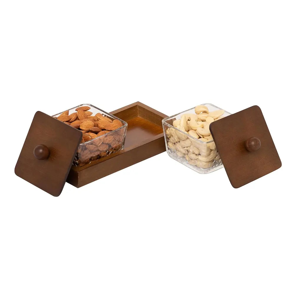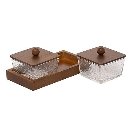 Organize in style with this elegant Glass Storage Container Set, complete with eco-friendly bamboo lids and a matching wooden tray. Crafted from high-quality, clear glass, these jars/bowls are perfect for storing snacks, spices, dry fruits, condiments, or small kitchen essentials. The airtight bamboo lids help keep contents fresh, while the sleek wooden tray keeps everything neatly in place—perfect for countertop or table display.
