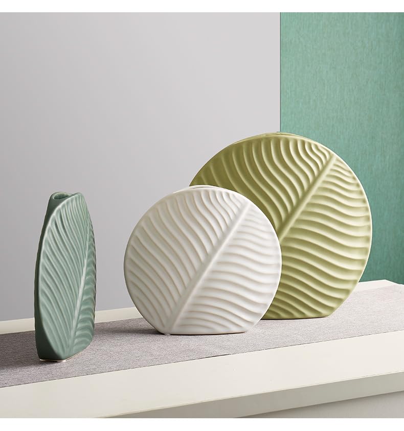 An elegant ceramic vase featuring a rounded silhouette with delicate leaf-inspired detailing. Ideal for fresh or dried flowers, or as a stylish standalone décor accent.